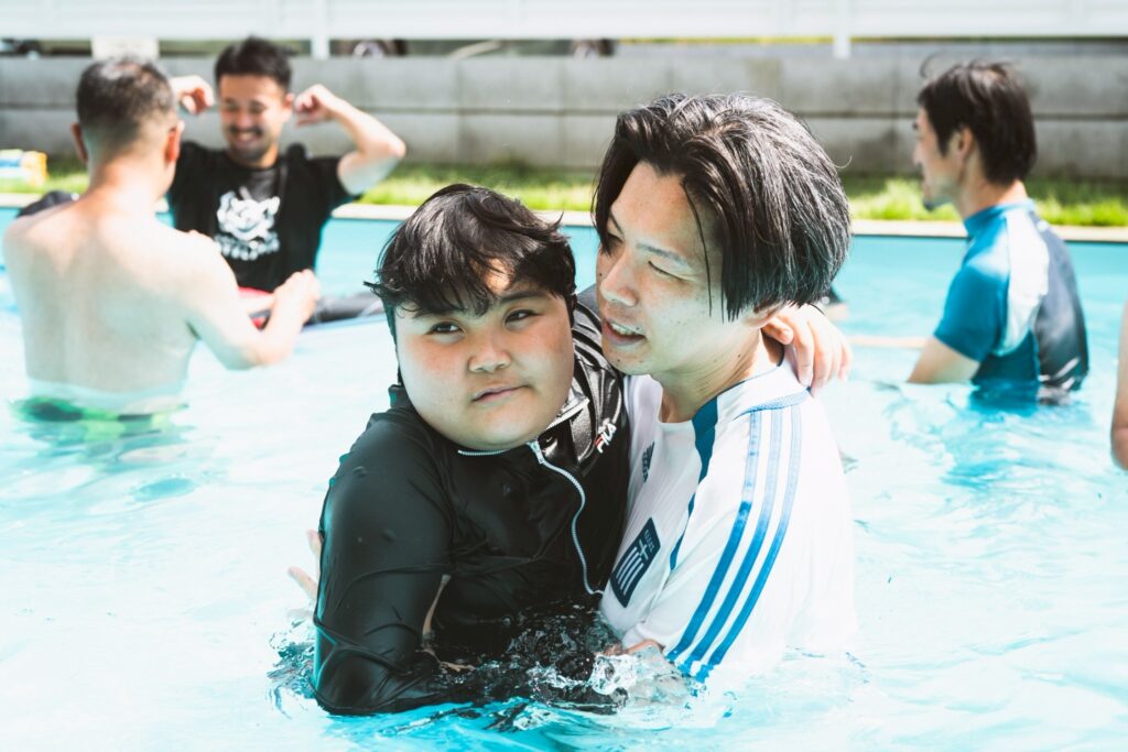 そして、スタッフのお子さんと医療的ケア児が自然に交流し、一緒に水遊びを楽しんでいた姿。特別な配慮や説明がなくても、子ども同士は水の中でただ一緒に楽しむ。そんなフラットで温かい景色が広がっていました。