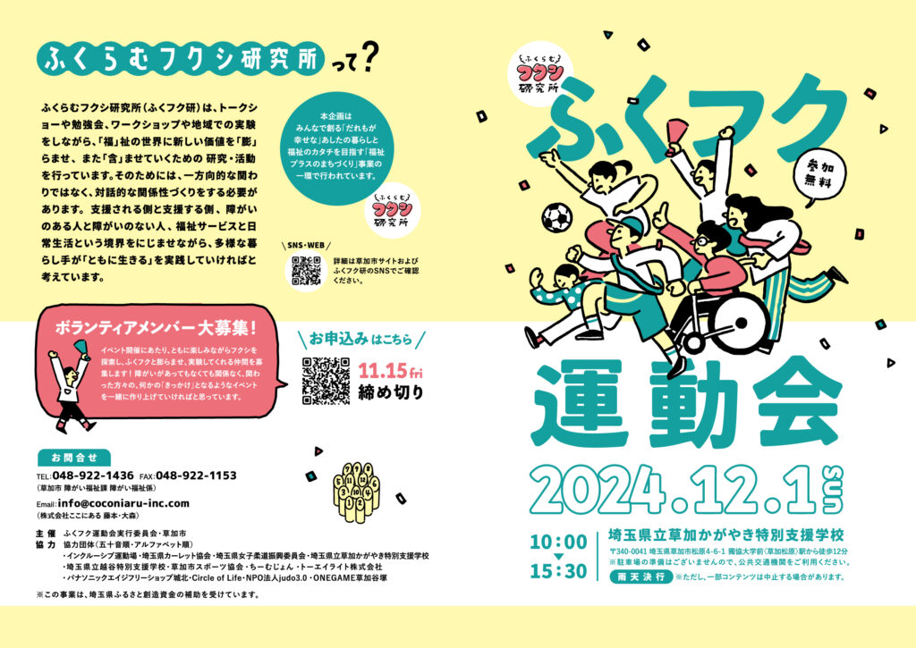 この企画にも、**「ふくらむフクシ研究所(略して、ふくフク研)」**の理念がしっかりと息づいています。ふくフク研は、埼玉県草加市発のプロジェクトとして、「」祉の世界に新しい価値を「」らませ、また地域の暮らしの中に自然に「」ませていくための研究・活動を行っています。