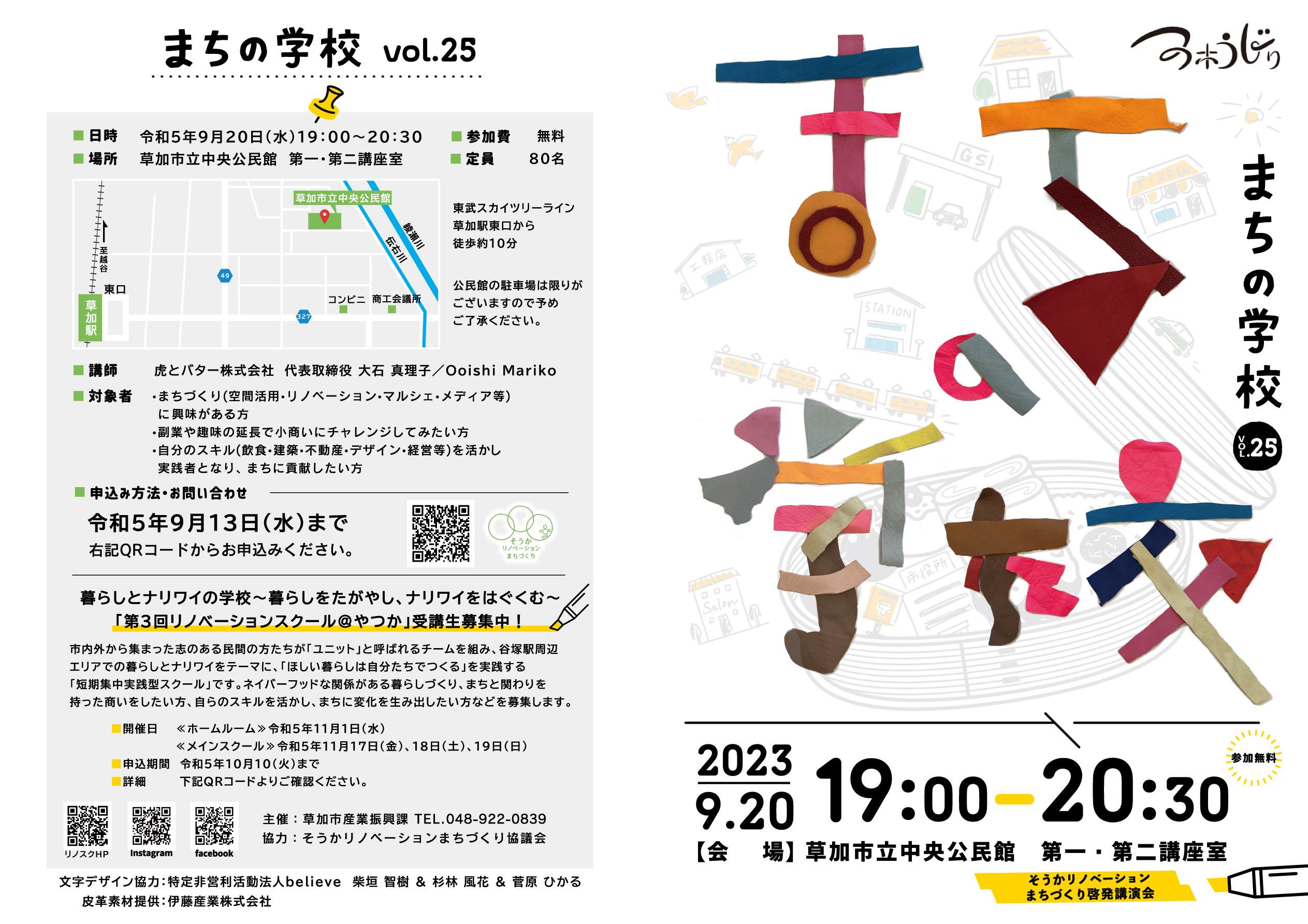 まちの学校VOL.25 2023.09.13GRAPHIC, PRODUCT, 福祉事業 草加市産業振興課受注デザイン。廃棄予定の革の廃材を職人さん(B型事業所)にカットしてもらいそれで文字を作成。 Tweet Share Pin it GRAPHIC, PRODUCT, 福祉事業 デザイン, 福祉, 草加 まちの学校VOL.24 第三回リノベーションスクール@やつか 関連記事一覧 ただようプールと、ととのうサウナ2025 叶え合う支援事業vol.2キギョウの連敬ミーティング 第4回ほぼスカイツリーコンソーシアム大会「暮らしから医療... 福祉プラスのまちづくり事業vol.3ふくフク商店街 (株)color garden 26 建築デザイン事務所... FLAT LOCATION2025 Cafe and farm LENTO様 カレンダー FROM SOKA CITY SDGs啓発動画 まちの学校VOL.23