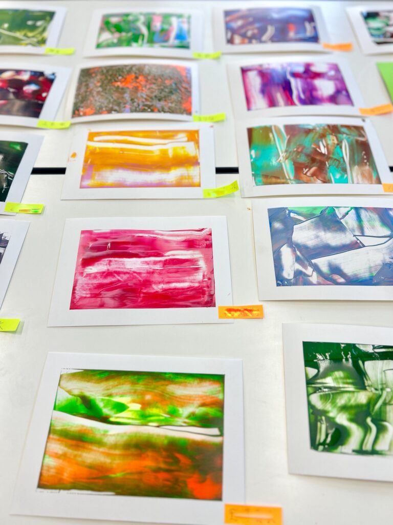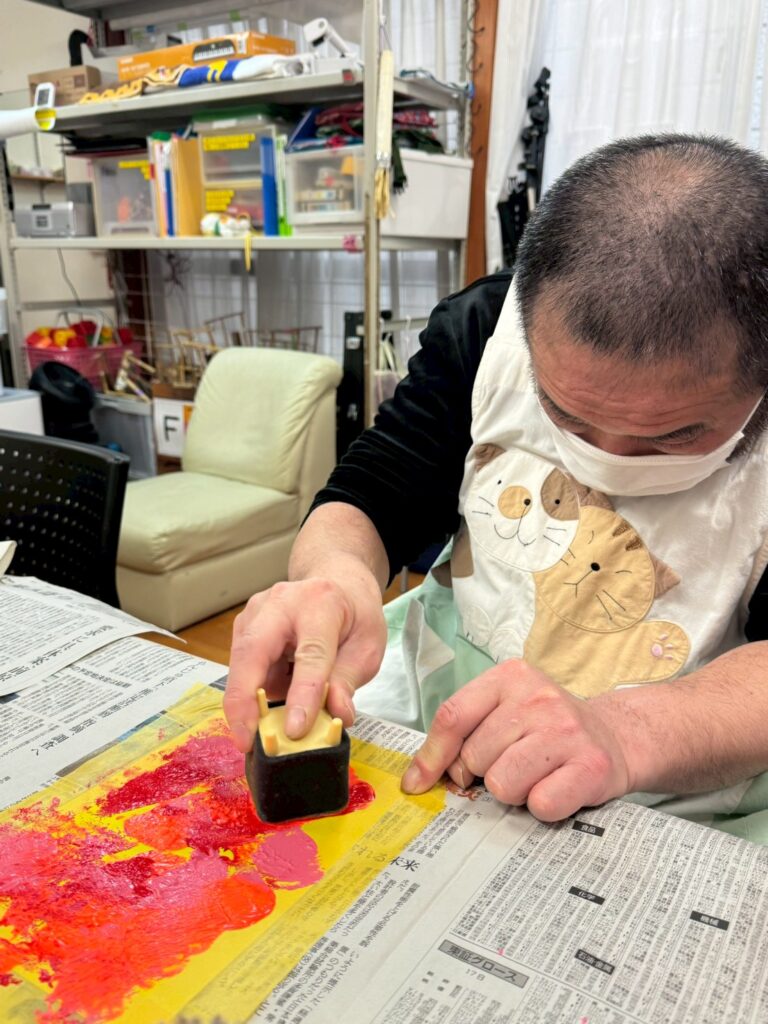 独特な方法で色を混ぜ合わせて生まれる、世界にひとつだけの色彩。誰も見たことのない文字やかたちで描かれる、自由で力強いデザイン。それは「障がいがあるから変わっている」のではなく、一人ひとりの個性が輝く、価値あるアート作品でした。