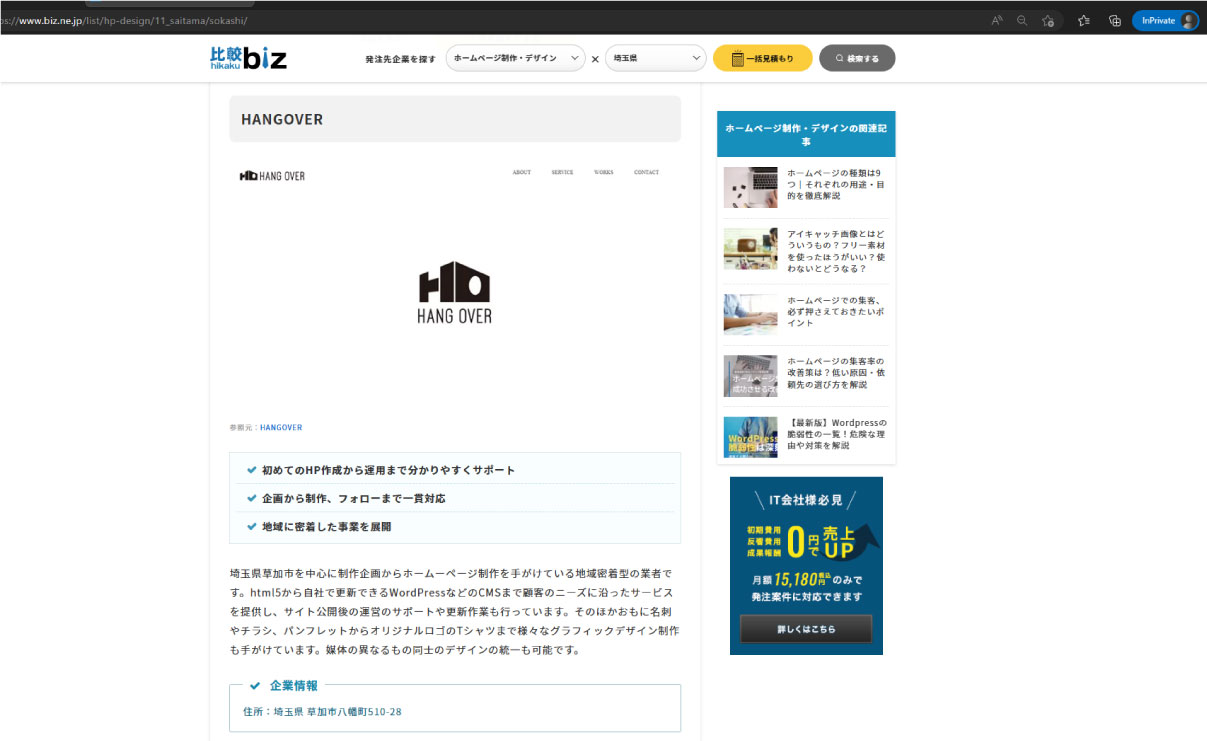 • ビジネスマッチングサービス「比較ビズ」様の「草加市のおすすめホームページ制作5社」として紹介されました