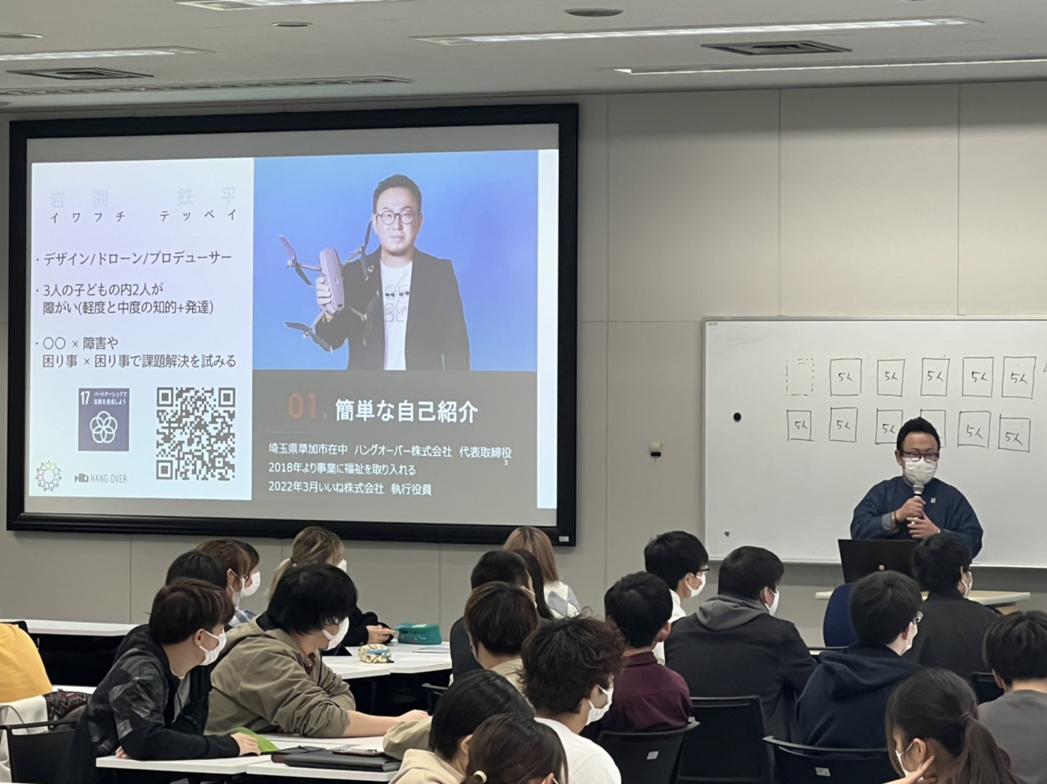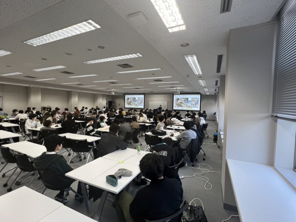 前回よりも多い時間と多くの学生さんの前で発表と簡単なワークショップを行いました。